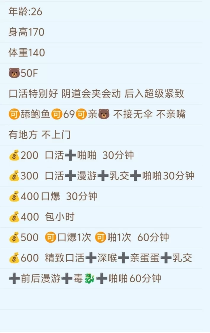 服务项目: 69 胸推 毒龙